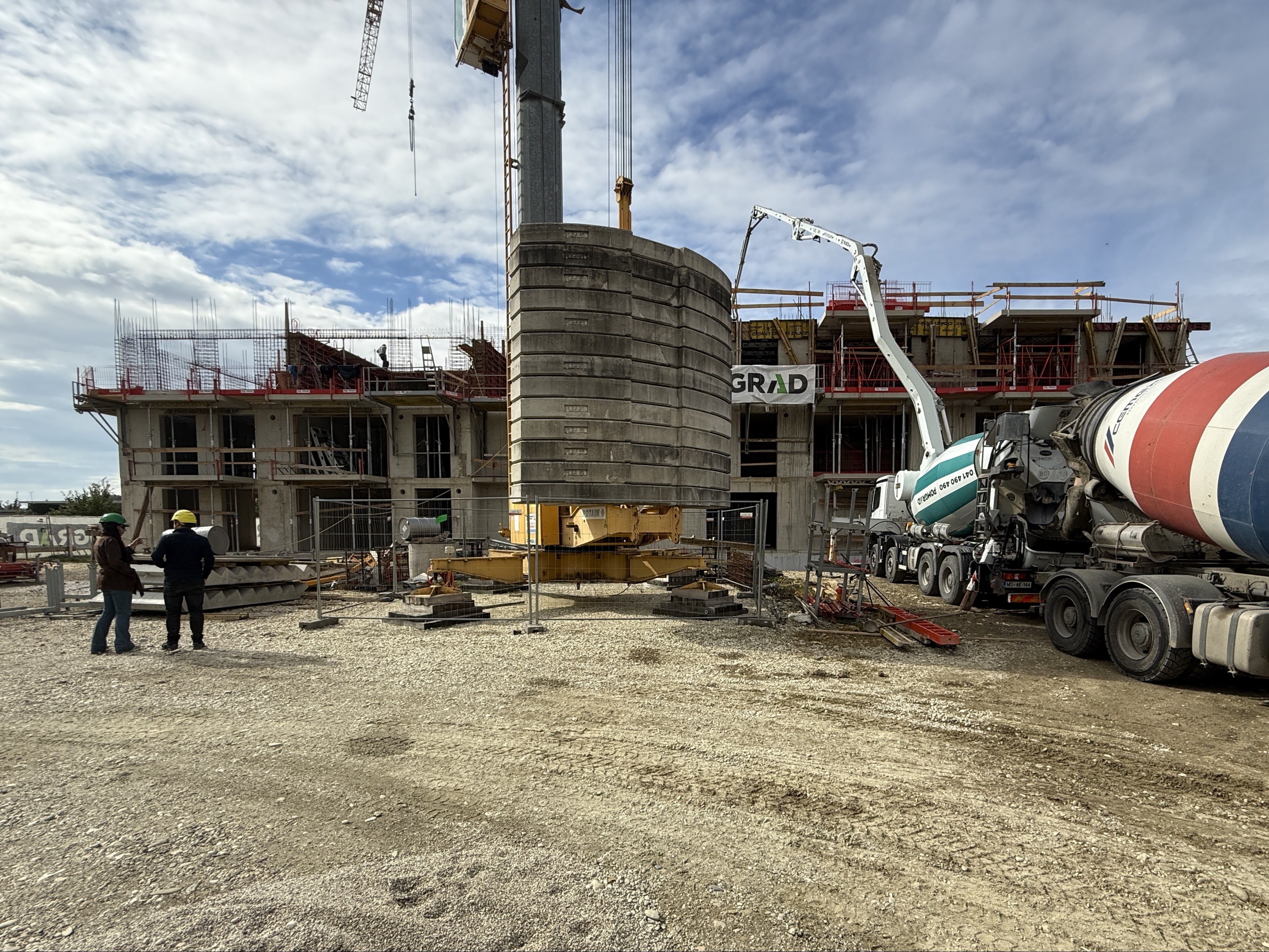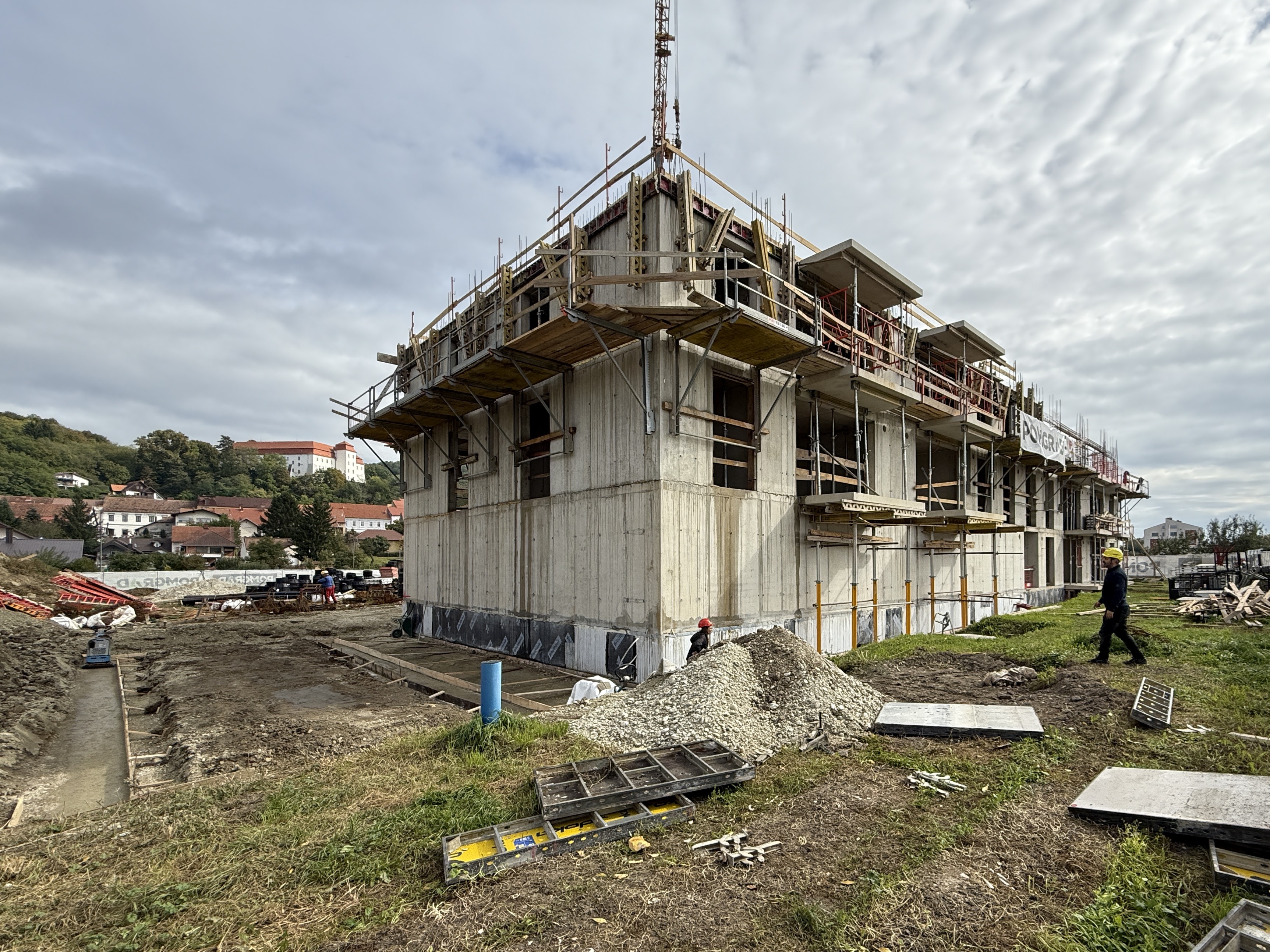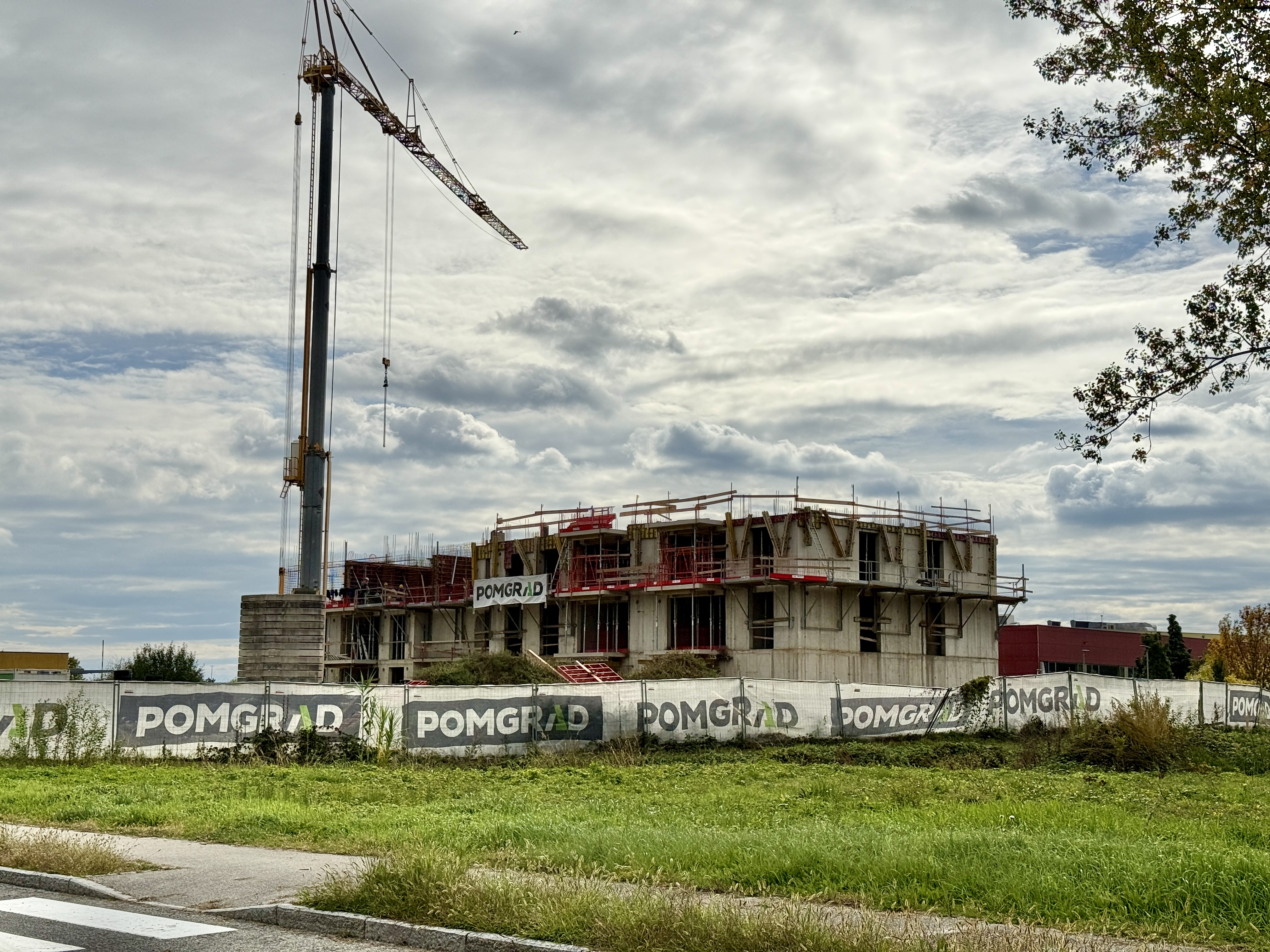 Sklad je h gradnji pristopil fazno, glede na potrebe območja po novih javnih najemnih stanovanjih. Soseska je načrtovana tako, da jo bosta tvorila identična objekta in da bo možna fazna izvedba in uporaba posameznega objekta neodvisno od časovnice izgradnje drugega. V sklopu 1. faze se trenutno gradi stanovanjsko stavbo s 40 najemnimi stanovanji, ki bodo na voljo v drugi polovici leta 2026, zunanje pripadajoče kolesarnice in skupni eko otok za potrebe obeh objektov. Skupno bo v soseski 80 stanovanj v dveh blokih.